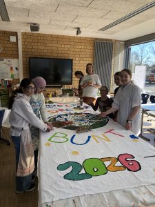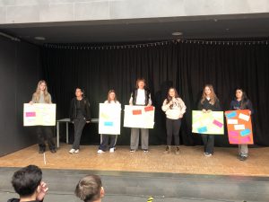 Zum Abschluss präsentierten die Gruppen ihre Ergebnisse auf der Bühne der MLKS. Den feierlichen Schlusspunkt bildete die Enthüllung der diesjährigen Fahne des Anti-Rassismus-Tages, an der Schüler:innen verschiedener Schulen gemeinsam gearbeitet haben.