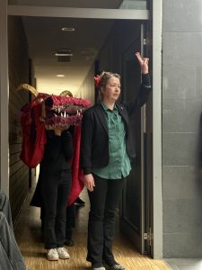 Ein weiterer Themenraum gehörte der Schauspielperformance „Butzelmann“ aus dem Fach Darstellen und Gestalten unter der Leitung von Katrin Block-Koloß. Der Live-Act wurde insgesamt viermal aufgeführt und beschäftigte sich auf künstlerisch-musische Weise mit dem Thema Angst. Für Make-up und Maske sorgte Anna Neubauer. Das Café Ole, betreut durch Birgit von Müller und die SV, rundete die Eröffnung kulinarisch ab.