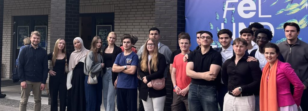 Im Fach Darstellen und Gestalten haben sich die Schüler:innen der Jahrgangsstufe 9 unter der Leitung von Herrn Marcel Schröder intensiv mit dem Thema „Angst“ beschäftigt. Dabei sind beeindruckende Bilder entstanden, die Neugier wecken, teilweise schockieren und auch ein Gefühl von Unbehagen vermitteln. Es kamen verschiedene Techniken und Materialien zum Einsatz – von Fineliner über Buntstifte, Wasserfarben, Kreide, […]
