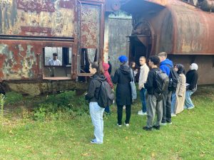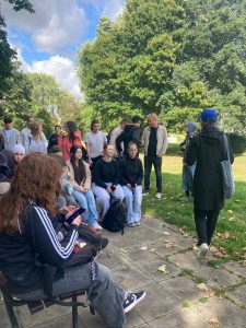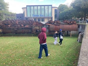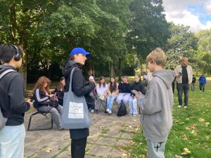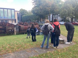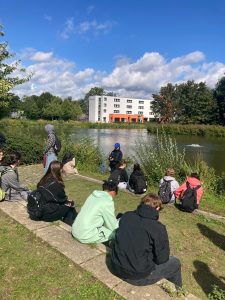 Am Freitag, den 12. September, machten die beiden Kunstkurse der EF von Herrn Schröder (MLKS) und Frau Henzler (WBG) einen spannenden Ausflug nach Marl. Dort konnten 40 Oberstufenschüler:innen Klangkunst auf eine ganz neue Weise entdecken. Gemeinsam mit der Künstlerin Nathalie Brum probierten sie die App Storydive aus, die einen künstlerischen Spaziergang durch Marl anbietet.